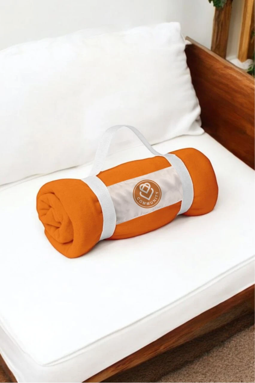 Материал: для пледа - флис плотностью 280 гр./м² стандартных цветов; для ремешка - ременная лента (стропа) стандартных цветов шириной 3 см; для вставки - оксфорд сублимационный.