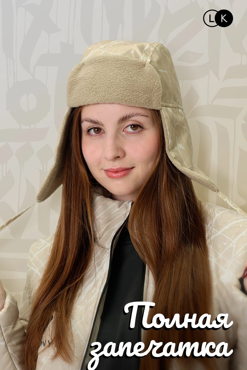 Шапка-ушанка Винтер на флисе взрослая, с полной запечаткой