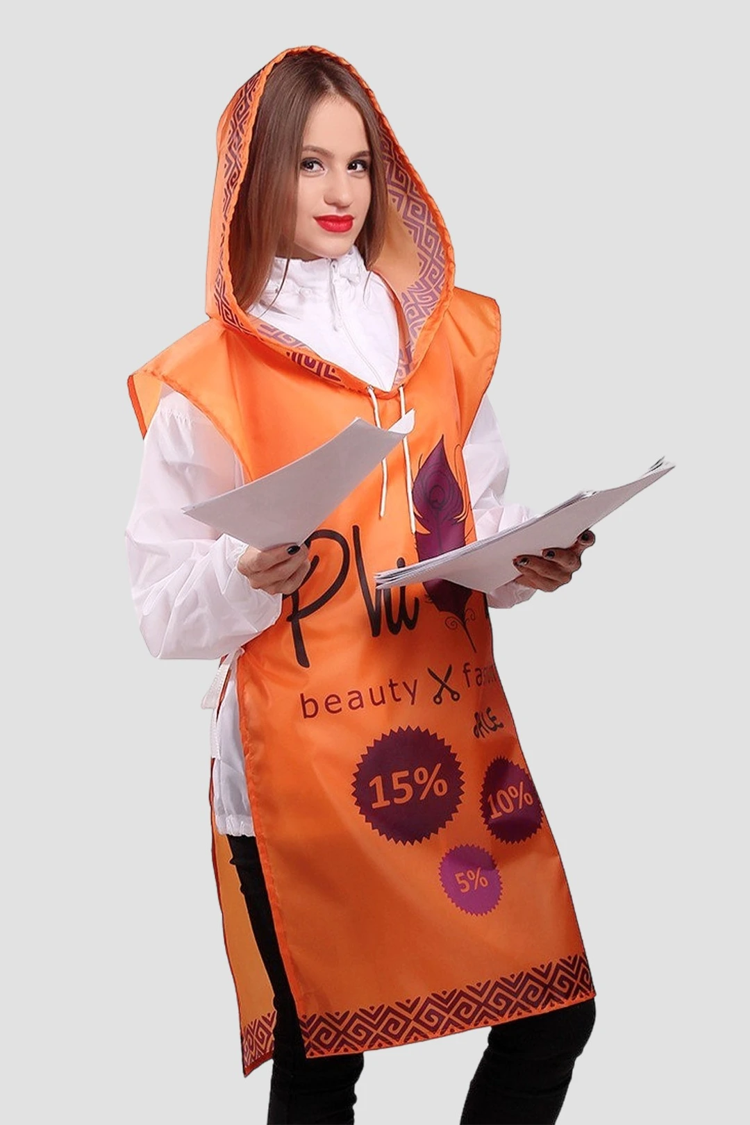 Проведение промоакций обычно не зависит от погодных условий. Для удобства ваших промоутеров компания "Инари" предлагает решение - накидка промоутера с капюшоном. Дополнительная защита промоутера от ветра, дождя и снега, а так же увеличенная площадь для рекламного нанесения сделают акцию более эффективной!