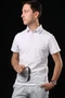 Модель. Прямой силуэт, за счет ткани стрейч облегает фигуру. Рукав короткий. Боковые разрезы по низу изделия. Планка на три пуговицы, воротник стойка из основной ткани. Применяются стандартные цвета пуговиц.