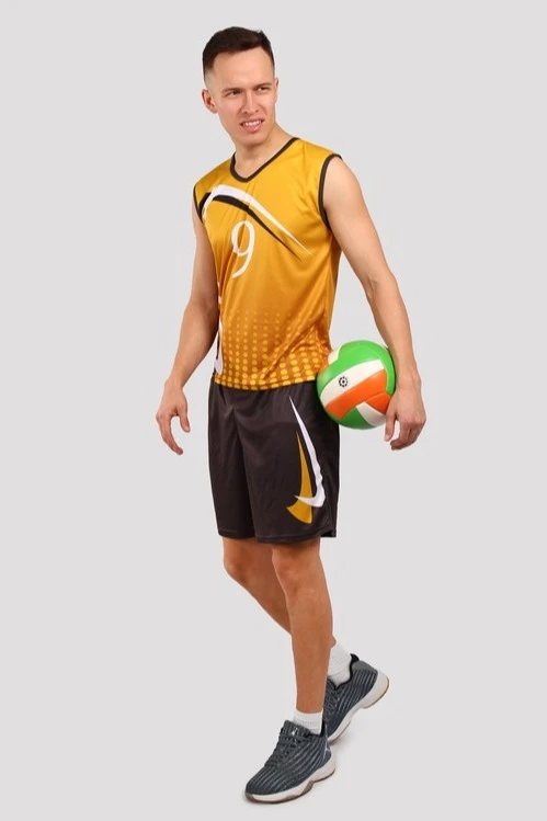 Мужская волейбольная форма Изи состоит из безрукавки и шорт. Сшитый из практичной примы, украшенный при помощи современной печати с полной запечаткой оригинальным изображением, комплект выглядит эффектно и создает безупречный имидж команды.