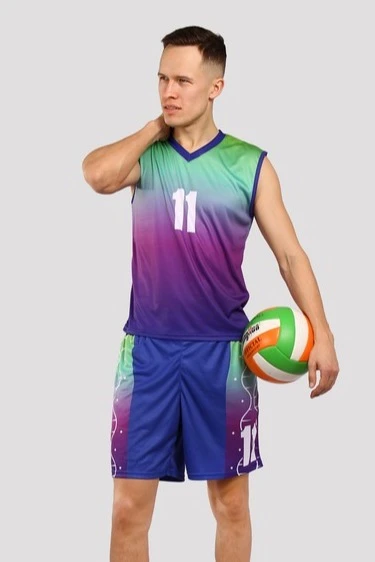 Мужская волейбольная форма Изи состоит из безрукавки и шорт. Сшитый из практичной примы, украшенный при помощи современной печати с полной запечаткой оригинальным изображением, комплект выглядит эффектно и создает безупречный имидж команды.