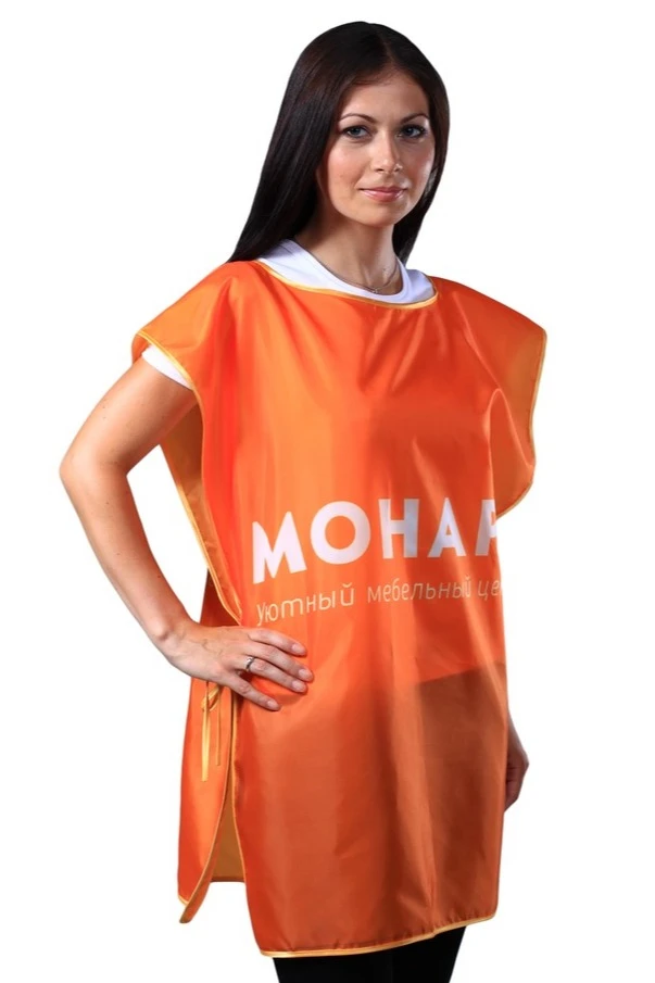 Накидка с полной запечаткой надевается поверх основной одежды, а по своей форме напоминает жилет. Такие изделия часто можно увидеть на промоутерах, раздающих рекламные листовки, и на интервьюерах, занимающихся проведением соцопросов. Приобретайте у нас накидки с нужными вам изображениями или надписями для своего персонала, контактирующего с людьми от лица вашей фирмы, общественной организации или политической партии.