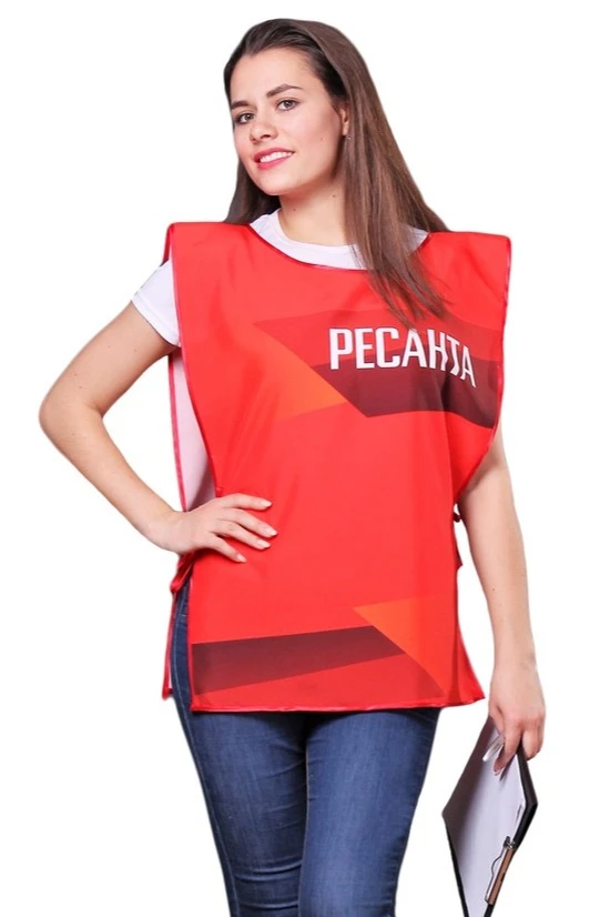 Накидка с полной запечаткой надевается поверх основной одежды, а по своей форме напоминает жилет. Такие изделия часто можно увидеть на промоутерах, раздающих рекламные листовки, и на интервьюерах, занимающихся проведением соцопросов. Приобретайте у нас накидки с нужными вам изображениями или надписями для своего персонала, контактирующего с людьми от лица вашей фирмы, общественной организации или политической партии.