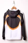Модель. Прямой силуэт, балахон на молнии без подклада. Длинные рукава. Низ балахона и манжеты рукавов выполнены из сублимационной ткани сандвич браш. Два прорезных кармана в листочку. Капюшон пришивной двухслойный, внутренний слой из сублимационной кулирной глади. Рекомендуется выбрать кулирную гладь цвета меланж, универсален под любой дизайн. У края капюшона продет плоский шнур шириной 15 мм стандартных цветов.