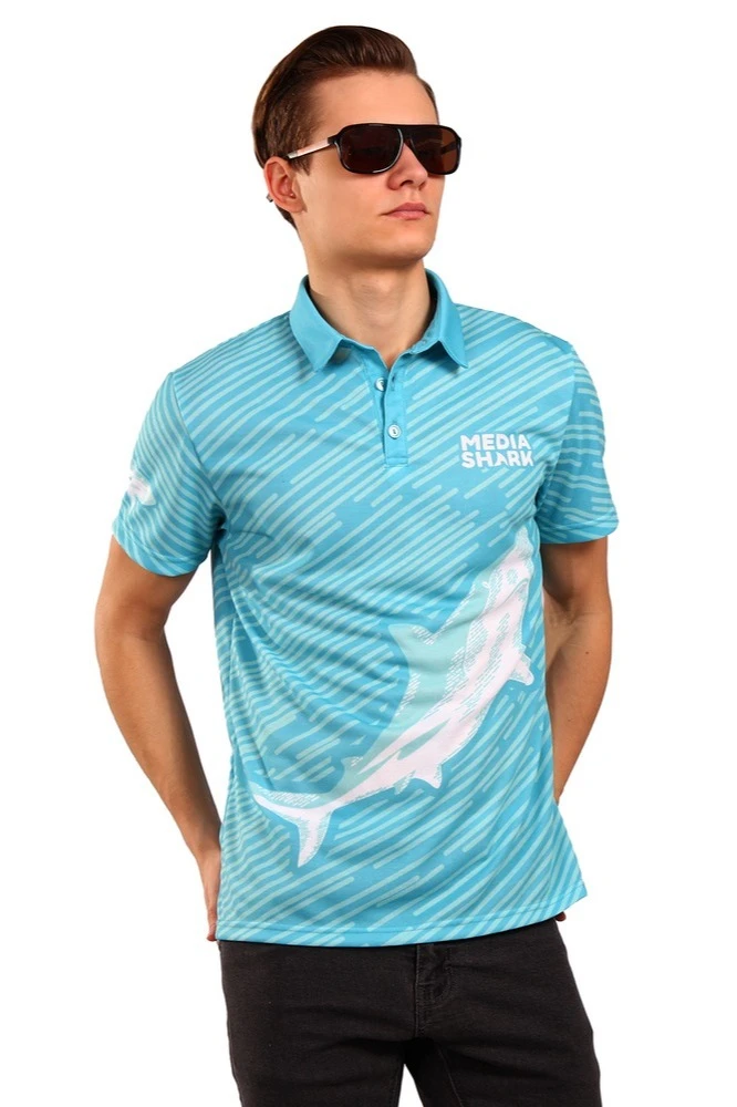 Поло Стар унисекс из ложной сетки с полной запечаткой "Media Shark"