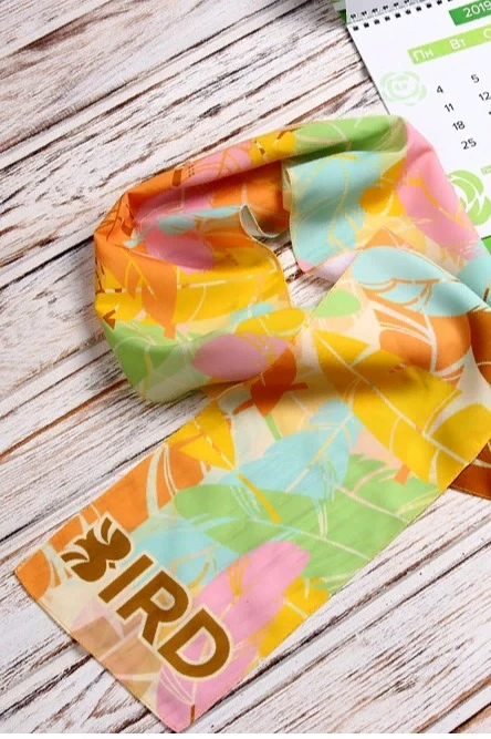 Сублимация. Полноцветная печать осуществляется на всей поверхности шарфа в процессе производства. Изображение располагается в соответствии с лекалом. Нанесение входит в стоимость шарфа. По желанию клиента на обороте шарфа может быть осуществлена полноцветная печать (оплачивается дополнительно).