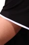 Модель. Прямой силуэт, за счет ткани стрейч облегает фигуру. Рукав короткий. Боковые разрезы по низу изделия. Планка на три пуговицы, воротник стойка из основной ткани. Применяются стандартные цвета пуговиц. Низ рукавов, край воротника и планки окантован контрастным цветом.