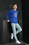 Модель. Прямой силуэт. Толстовка без молнии. Длинные рукава. Низ толстовки и рукавов, а также горловина обработаны тканью кашкорсе (специальная тканная резинка) в цвет толстовки. Толстовка без капюшона и карманов.
