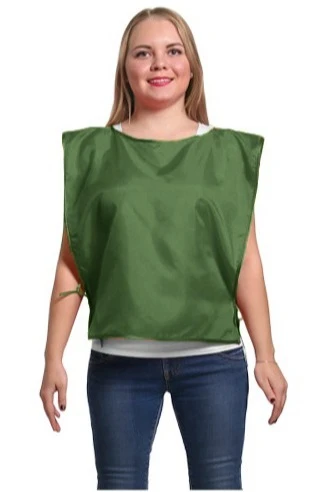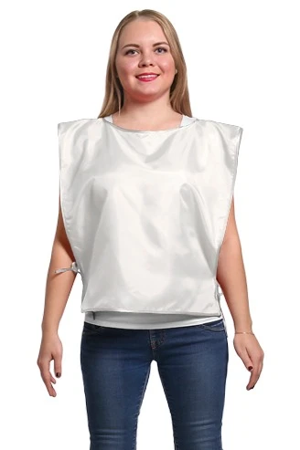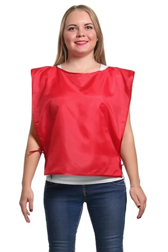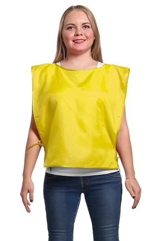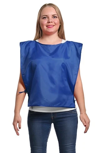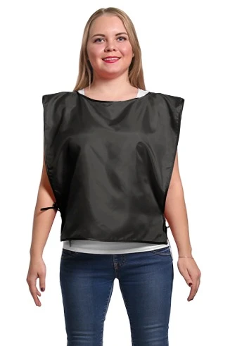 Модель: Накидка прямоугольной формы без карманов. Возможна обработка края накидки швом вподгибку, горловина обрабатывается косой бейкой, завязки выполнены из брючной ленты белого или черного цветов, длиной 30 см.