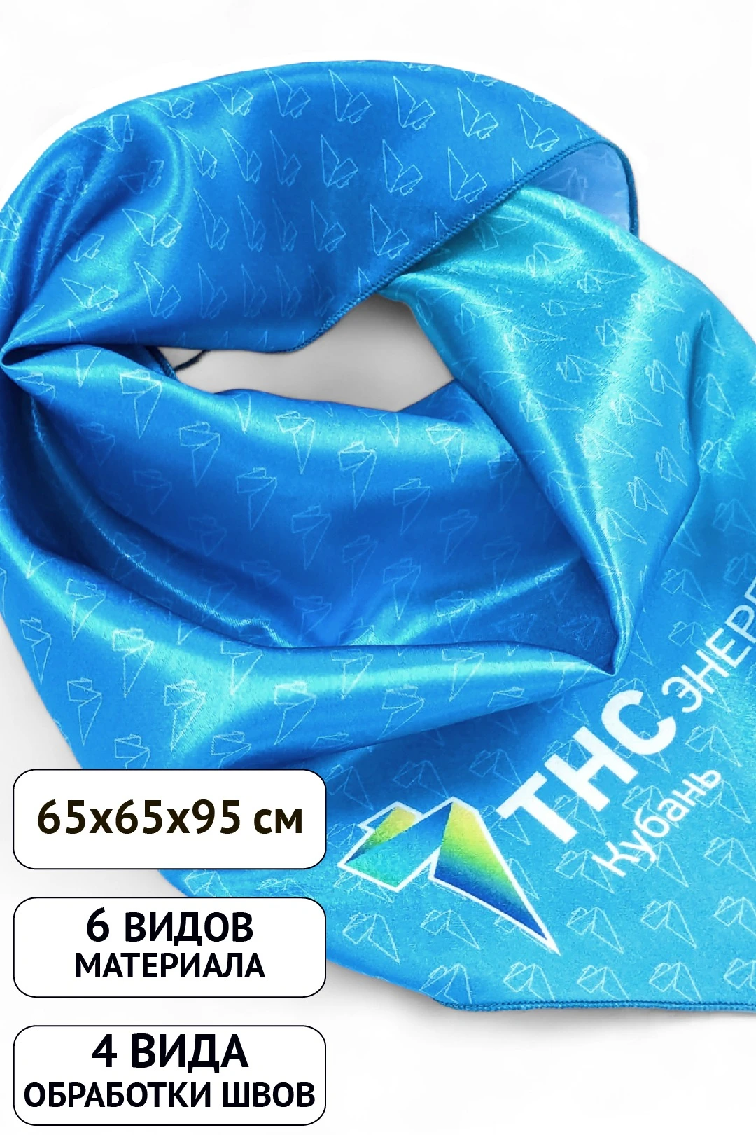 Особенности нанесения: Полноцветное нанесение осуществляется методом сублимации на одну сторону материала. При печати с двух сторон на лицевой стороне осуществляется полноцветная печать, на обороте - фоновая заливка. Изображение размещается в соответствии с лекалом. Нанесение на косынку входит в стоимость косынки.