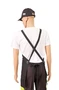 Модель: Фартук фигурной формы без разреза. Фартук по периметру обработан швом вподгибку. Фартук изготовлен с одним карманом 18х70 см, разделенным на 6 отсеков, либо с тремя карманами: два боковых 18х20 см и один карман на груди 13х12 см. Креплением служат перекрещивающиеся на спине лямки. Лямки из основной ткани фиксируются на груди с помощью двух пластиковых регуляторов черного цвета. В районе пояса лямки продеваются через два никелированных люверса диаметром 15 мм.