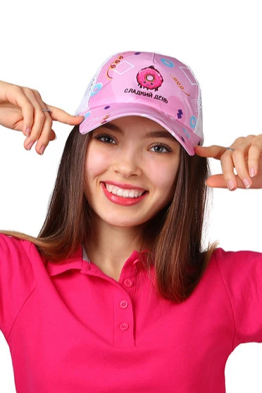 Сублимация. Полноцветная печать осуществляется на всей поверхности бейсболки в процессе производства. Изображение располагается в соответствии с лекалом. Нанесение входит в стоимость товара.