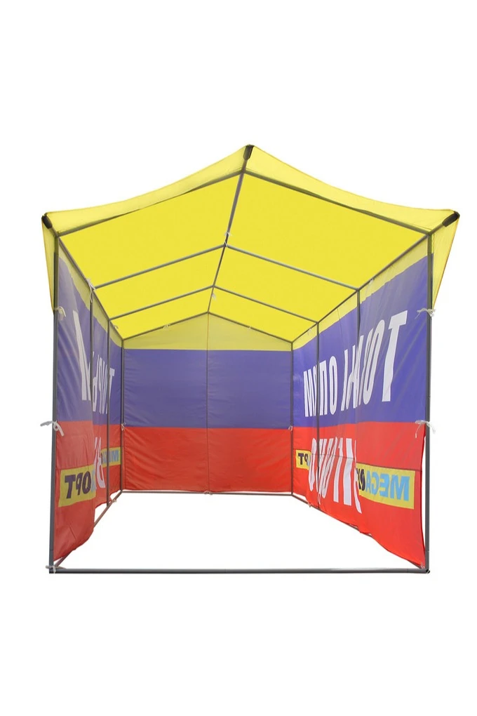 Легкий и прочный тент предназначен для торговой палатки и палатки для промоакций, которые устанавливаются в павильонах и под открытым небом. Тент, натянутый на конструкцию для палатки, защитит вас и вашу продукцию в любое время года от солнца, дождя или снега.