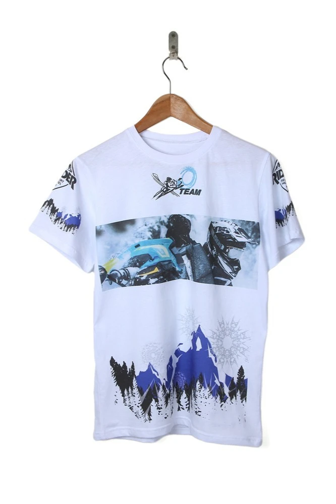 Полноцветный термоперенос (DTF). Размер нанесения не более формата А3. Возможна печать на рукавах футболки. Допускается любое векторное или растровое полноцветное изображение. Способ применяется для единичных и средних тиражей. В одной партии могут быть разные макеты.