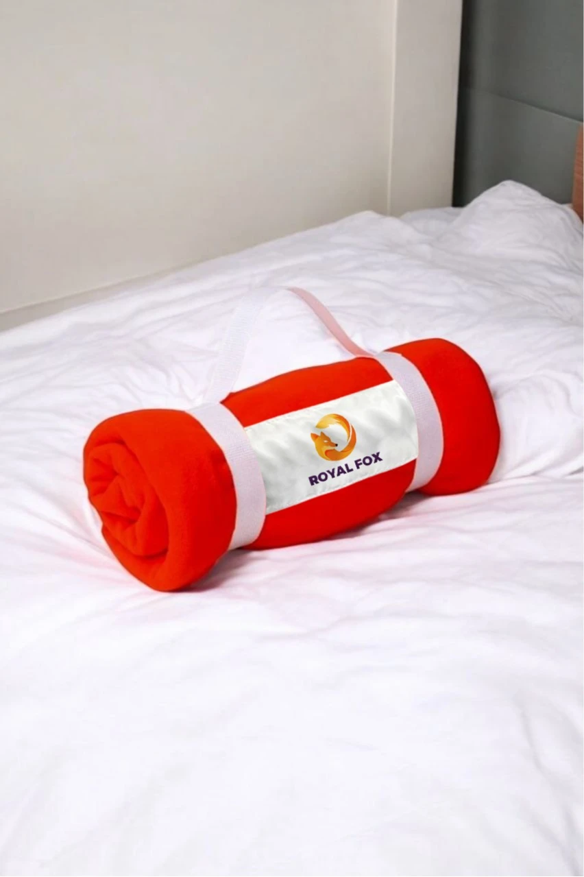 Упаковка: Плед сворачивается в рулон и затягивается ремешками, которые крепятся на липучку. Сверху имеется ручка для переноски. На ремешках присутствует вставка из оксфорда с нанесением.