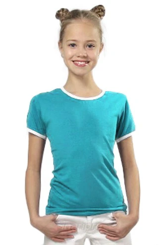 Модель. Прямой силуэт. Рукав короткий. К нижней части рукава пришивается декоративная вставка в цвет футболки или другого цвета. Футболка имеет боковые швы без разрезов по низу изделия. Обработка горловины руликом (кантом) из основной ткани в цвет футболки или другого цвета. Форма ворота О-образная. Возможно бесплатное комбинирование деталей разных цветов (например, рукава могут отличаться по цвету от остальных деталей).