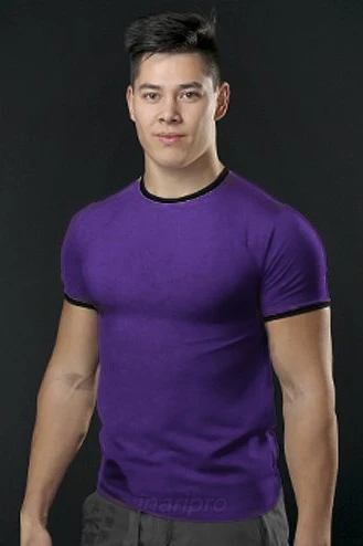 Модель. Прямой силуэт. Рукав короткий. К нижней части рукава пришивается декоративная вставка в цвет футболки или вставка стандартных цветов. Футболка имеет боковые швы без разрезов по низу изделия. Обработка горловины руликом (кантом) из основной ткани в цвет футболки или других стандартных цветов. Форма ворота О-образная.