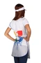 Модель: Накидка фигурной формы без карманов. За дополнительную плату фартук-накидка может быть пошит с одним карманом 20х25 см, либо двумя карманами 13х16 см. Края и горловина фартука обрабатываются косой бейкой стандартных цветов. Завязки длиной 50 см, выполнены из косой бейки.
