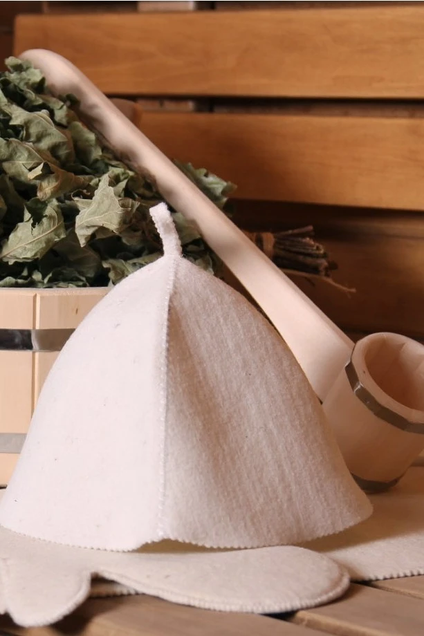 Шапка или колпак из войлока - незаменимая вещь для всех любителей банного отдыха. Выполненная из качественного войлока, она не позволит обжечь голову во время посещения парной. Банную шапку при помощи вышивки можно легко снабдить нужным рисунком, надписью или логотипом. Получится оригинальный сувенир, который не будет стыдно преподнести в качестве подарка совершенно любому человеку, неравнодушному к бане.