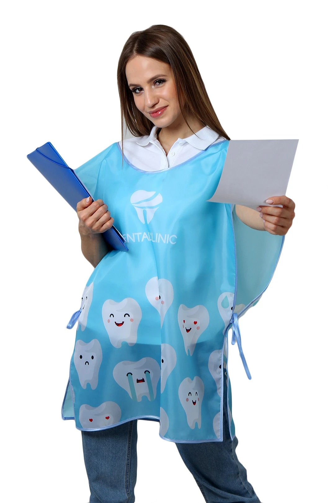 Модель: Накидка прямоугольной формы без карманов. По желанию клиента накидка может быть пошита с одним карманом 20х25 см, либо двумя карманами 13х16 см (оплачивается дополнительно). Края и горловина накидки обрабатываются косой бейкой, завязки выполнены из косой бейки длиной 30 см. Возможна обработка края накидки швом вподгибку, горловина обрабатывается косой бейкой, завязки выполнены из брючной ленты белого или черного цветов, длиной 30 см. За дополнительную плату крепление может быть изготовлено из резинки (ширина 2,5 см), либо липы, либо завязок из брючной ленты белого или черного цветов с креплением "межуровневый замок".