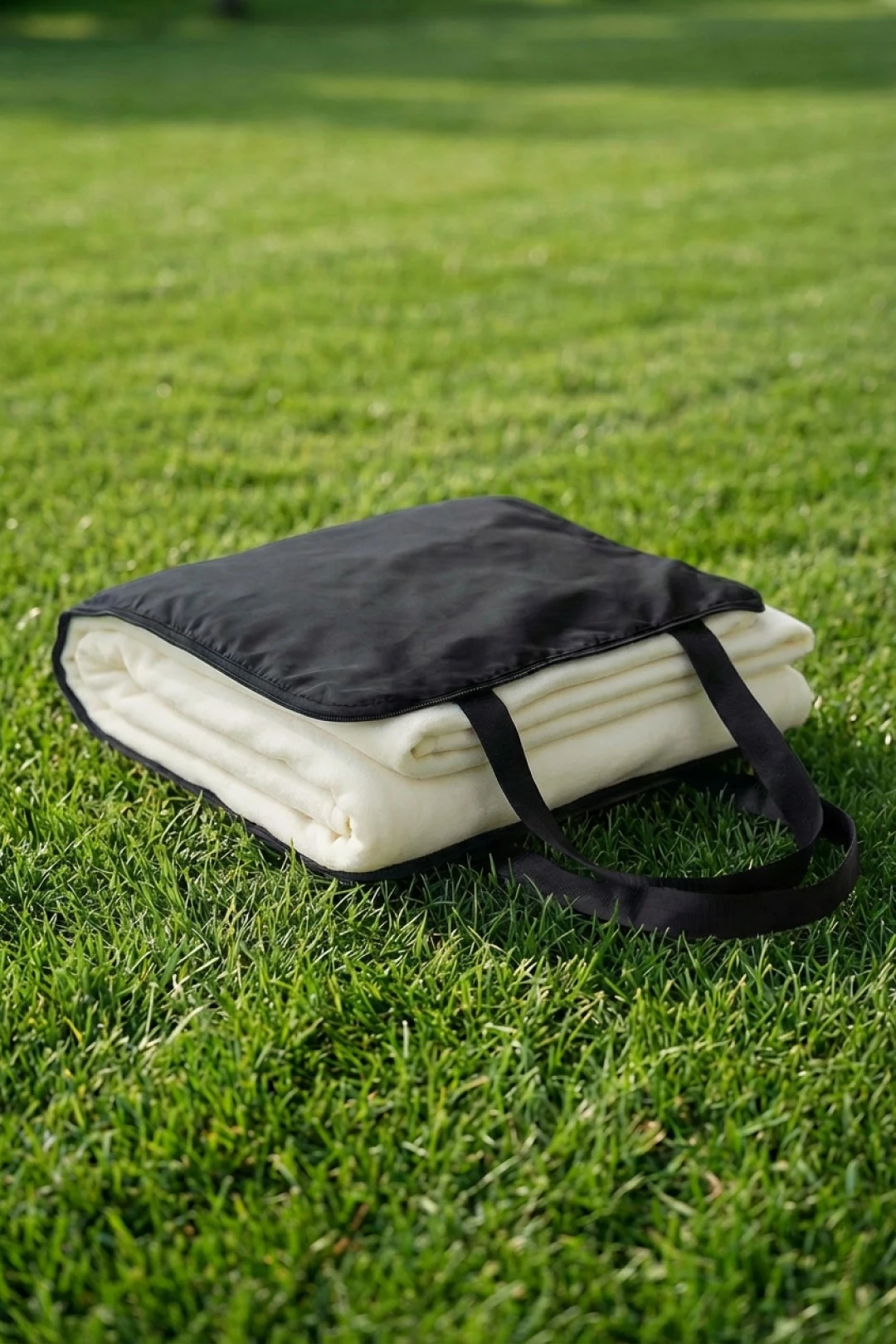 Упаковка: плед компактно укладывается в сумку 35х43 см, нашитую на плед. Длина ручек сумки 60 см, застежка - молния. Плед в сумке упаковывается в прозрачный пакет на липкой ленте.
