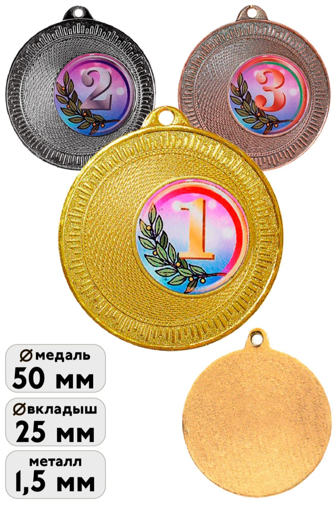 Материал: Медаль металлическая. Вкладыш из алюминиевой пластины толщиной 0,45 мм. Цвета вкладыша белый перламутр, золото перламутр, серебро перламутр, медь сатин.