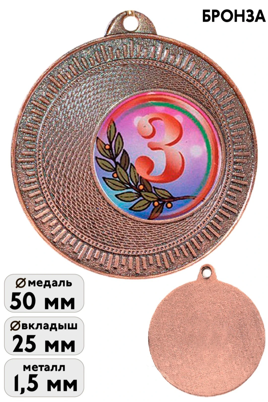 Диаметр медали: 50 мм.