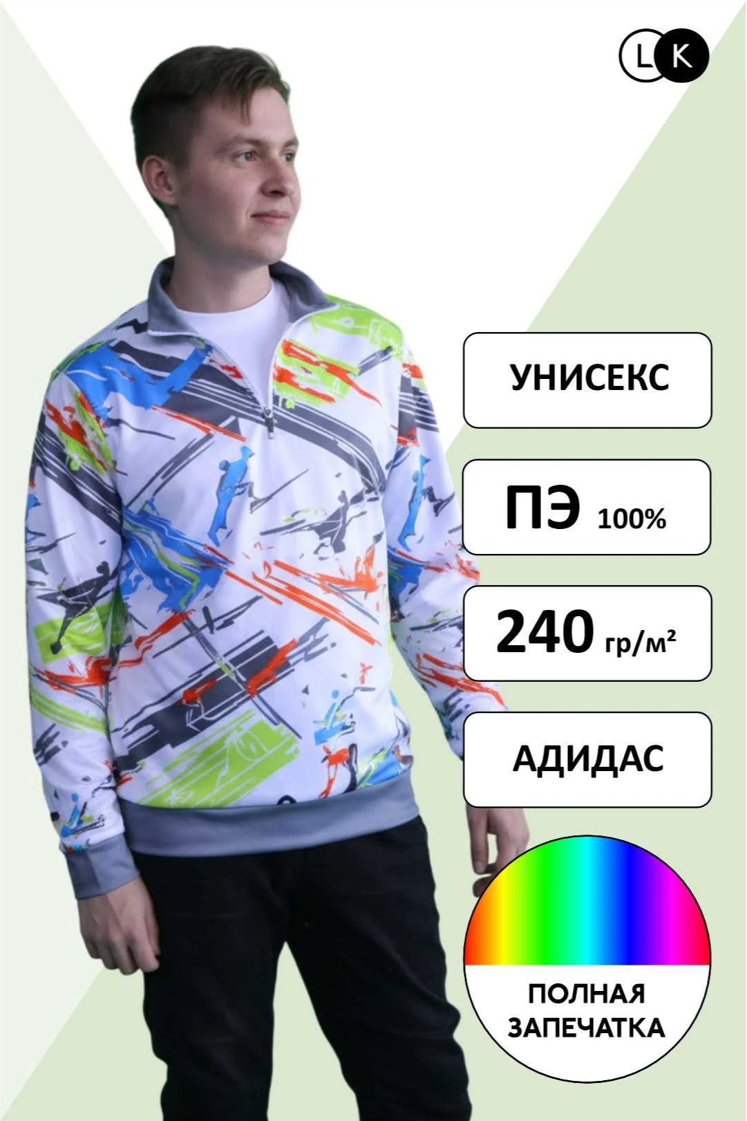 - футер сублимационный петелька (100% полиэстер, плотность 300 гр/м²),
