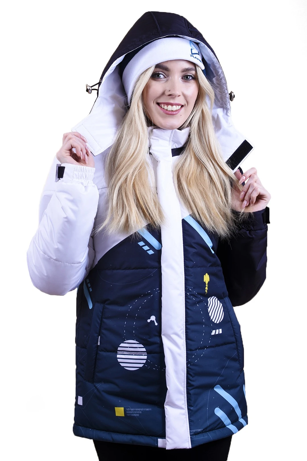 Куртка Винтер с капюшоном на синтепоне унисекс, с полной запечаткой "Planet"