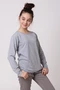 Модель. Прямой силуэт. Рукав длинный. Лонгслив имеет боковые швы без разрезов по низу изделия. Обработка горловины руликом (кантом) из основной ткани в цвет лонгслива или другого цвета. Форма ворота О-образная. Возможно бесплатное комбинирование деталей разных цветов (например, рукава могут отличаться по цвету от остальных деталей).