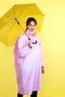 Модель. Дождевик прямого силуэта с длинным рукавом и манжетой на резинке. Пришивной капюшон затягивается шнуром с фиксаторами. Дождевик без застежки и карманов.