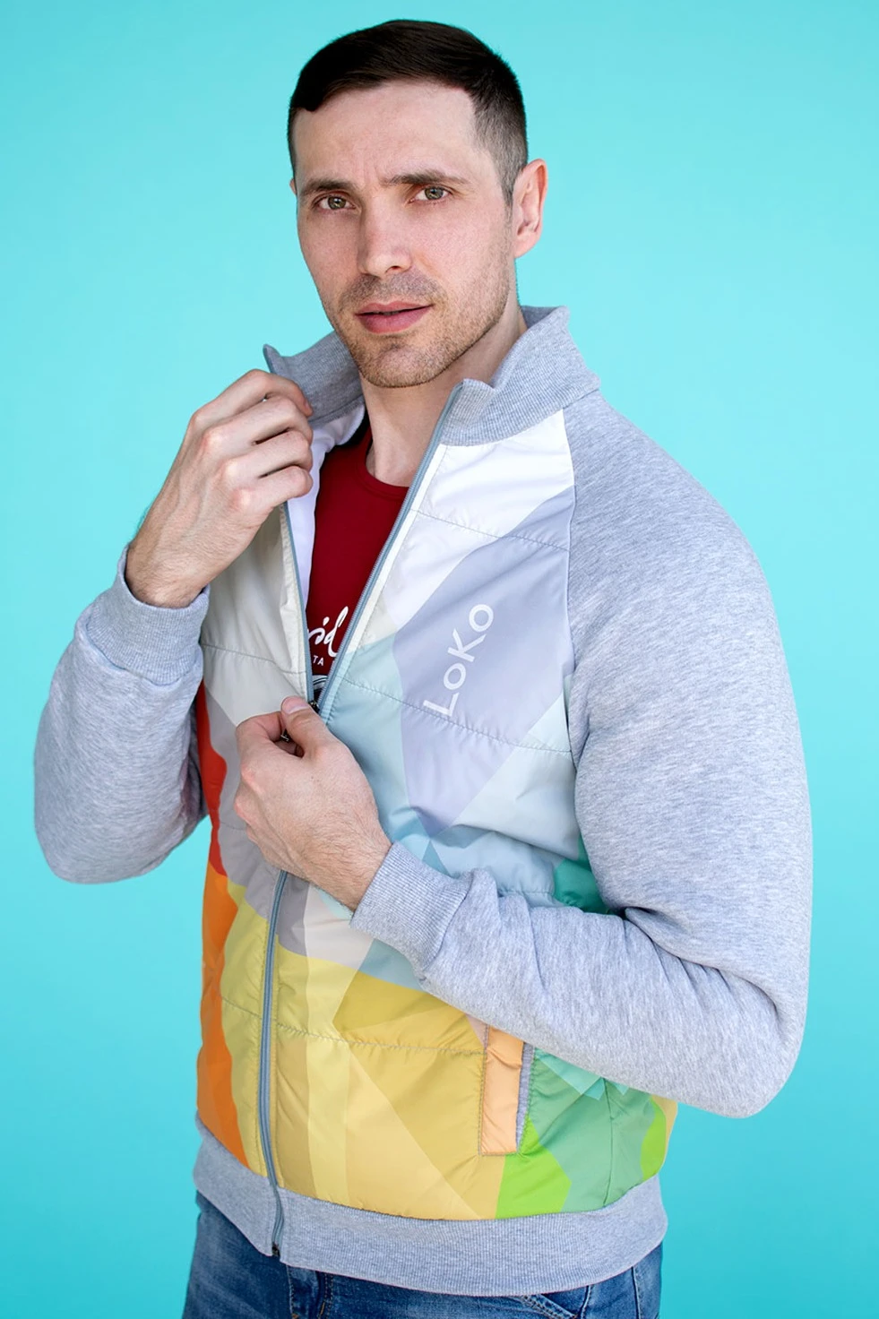 Модель. Толстовка прямого силуэта с рукавом реглан, имеет два прорезных кармана в листочку без молнии, полочка и спинка со стандартной стежкой. Без капюшона, застежка молния. Основной материал футер 3-х нитка с начесом стандартных цветов, полочка и спинка выполнены из дьюспо с полной запечаткой. Подклад из шелка расцвечивания стандартных цветов, имеет наполнитель из синтепона 60 гр. Воротник, манжеты рукавов и низ толстовки выполнены из кашкорсе стандартных цветов.
