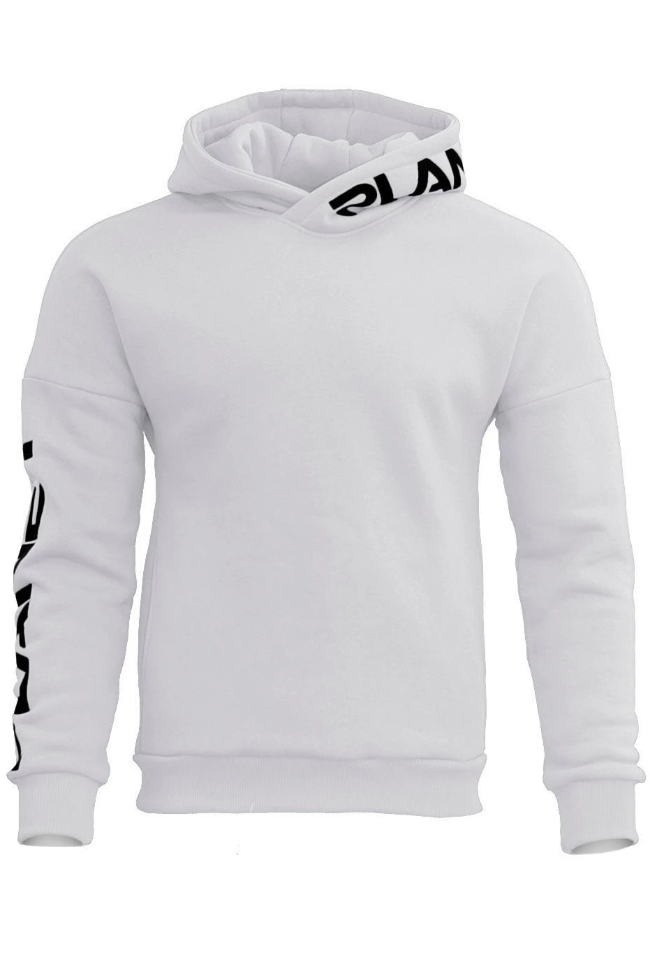 Модель. Худи Кинг прямого силуэта, без молнии. Длинные рукава со спущенной линией плеч. Имеет два кармана в боковом шве. Низ толстовки и рукавов обработаны тканью кашкорсе (специальная тканая резинка) в цвет толстовки. Капюшон пришивной двухслойный.