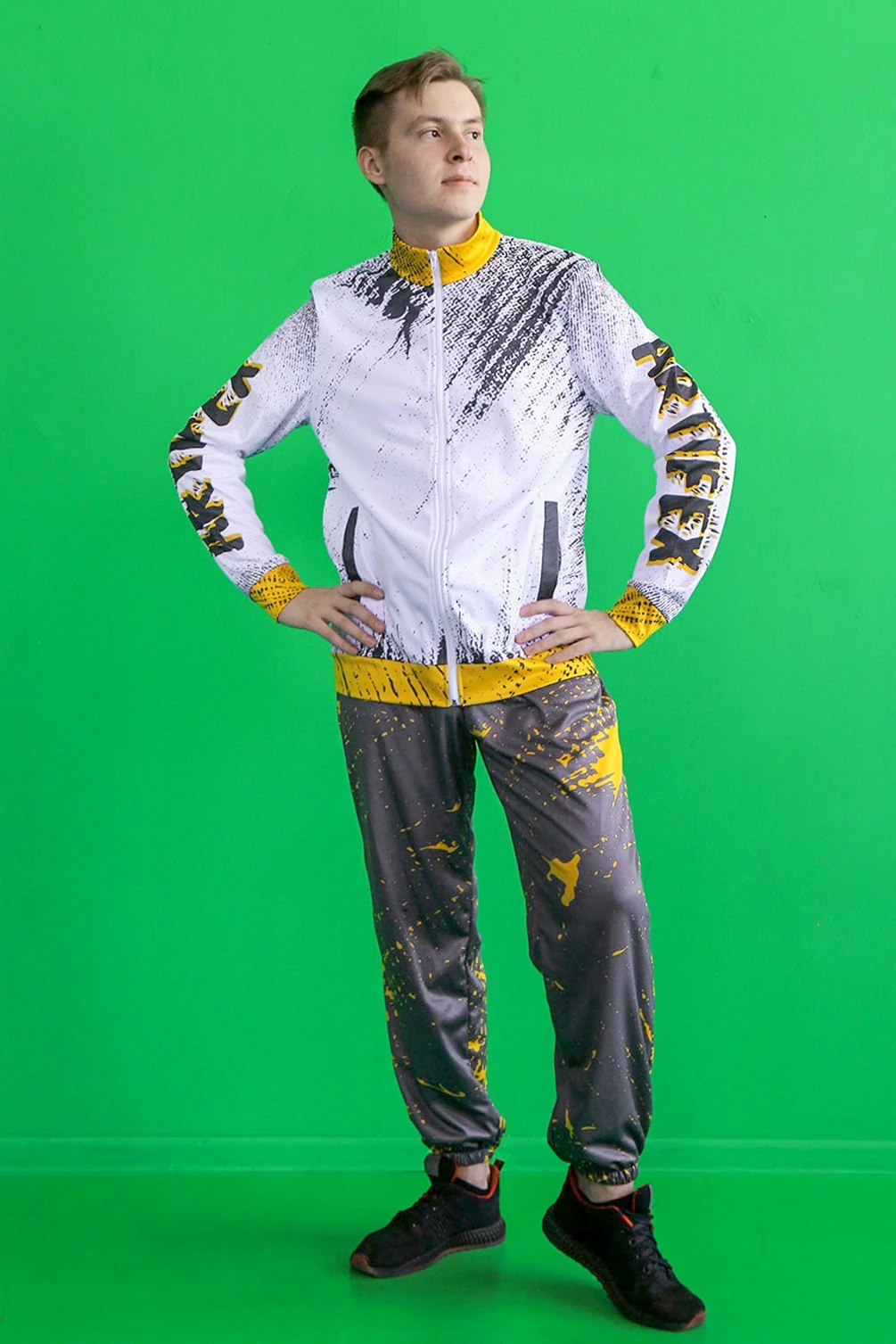 Модель: Спортивный костюм Стайлинг унисекс состоит из толстовки и брюк: