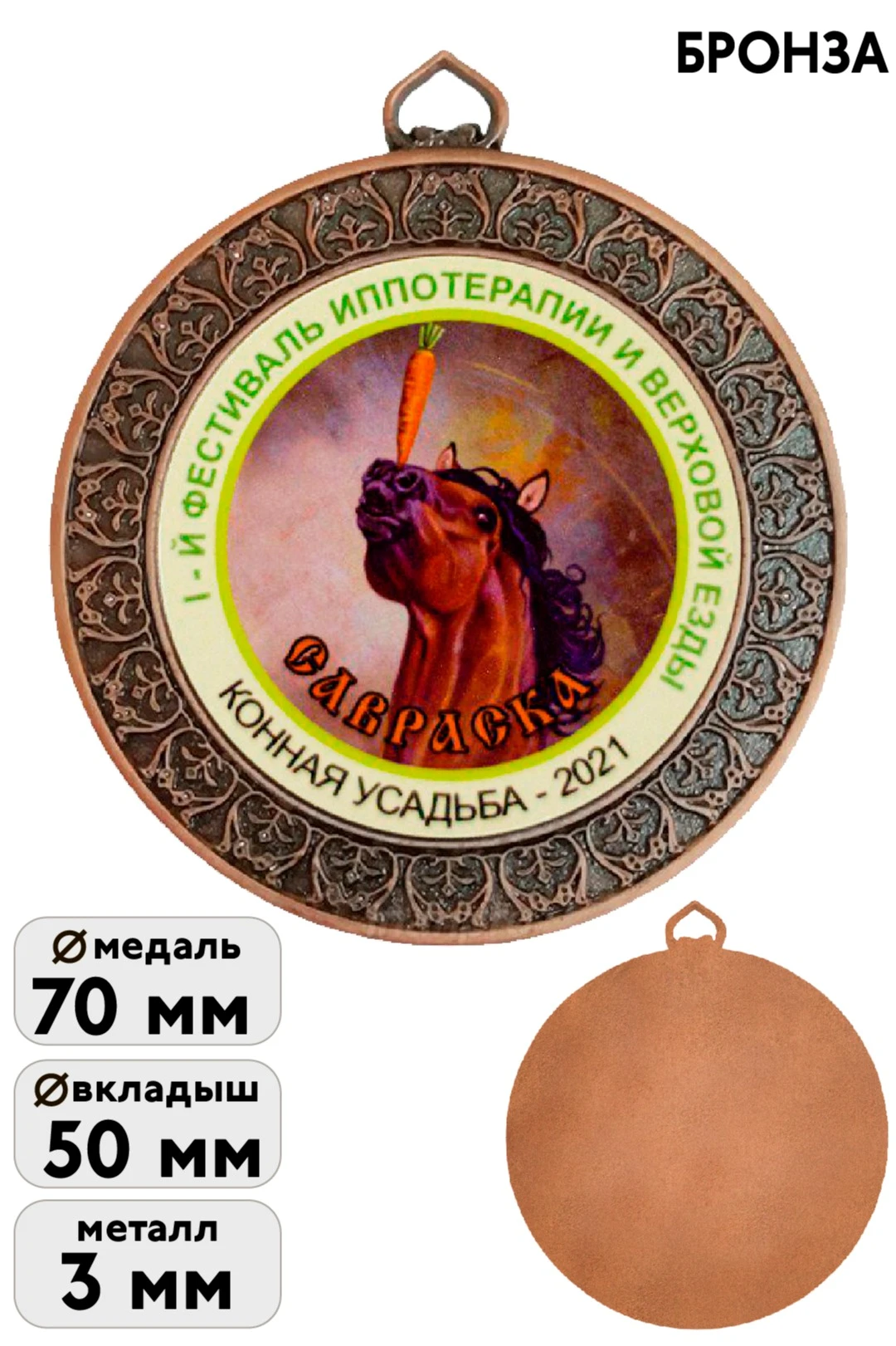 Диаметр медали: 70 мм.