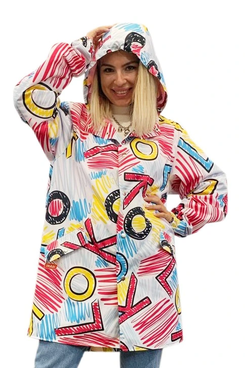 Модель. Ветровка прямого силуэта с длинным рукавом с манжетой на резинке. Пришивной капюшон затягивается резинкой с фиксаторами. Задняя часть удлинённая с фигурным низом. Ветровка застегивается на кнопки. Ветровка с подкладом из шелка расцвечивания стандартных цветов. Имеет два кармана с клапаном на кнопках.