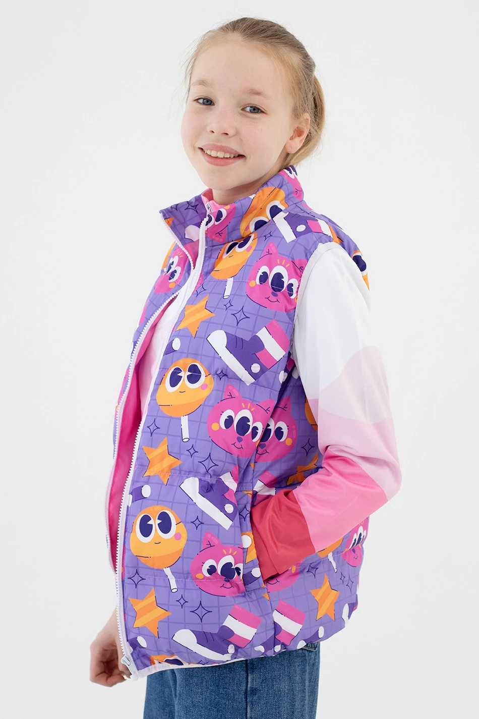 Детские жилеты Морган Лайт с наполнителем из синтетического пуха - отличаются своим теплом и комфортом. Это стильная и удобная вещь, которая отлично смотрится, не стесняет движений во время активных семейных прогулок и подходит для занятий спортом на улице. Жилеты производятся с полной запечаткой, изображения наносятся по вашему образцу.