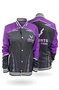 Модель. Прямой силуэт, без капюшона, без подклада. Длинные рукава с манжетами из сублимационной ткани сандвич браш. Низ бомбера и воротник с закругленными углами также выполнены из сублимационной ткани сандвич браш. Вариант застежки бомбера на выбор: на семь металлических кнопок или на молнию. Два боковых кармана в листочку без молнии.