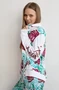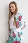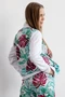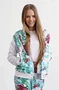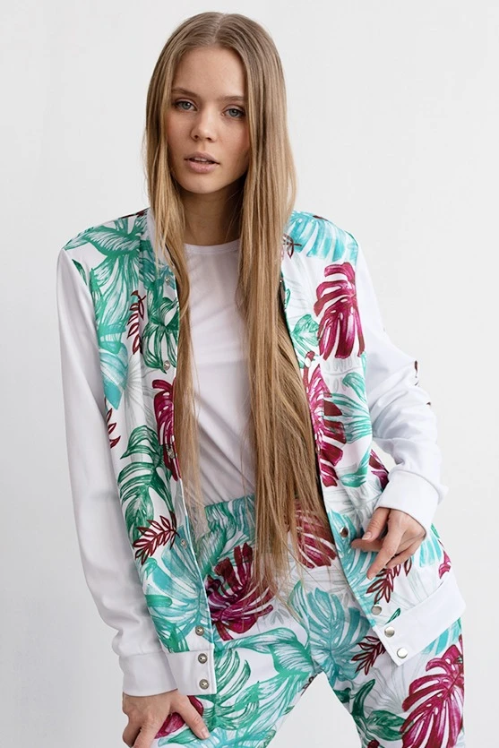 Модель. Прямой силуэт, без капюшона, без подклада. Длинные рукава с манжетами из сублимационной ткани сандвич браш. Низ бомбера и воротник с закругленными углами также выполнены из сублимационной ткани сандвич браш. Вариант застежки бомбера на выбор: на семь металлических кнопок или на молнию. Два боковых кармана в листочку без молнии.