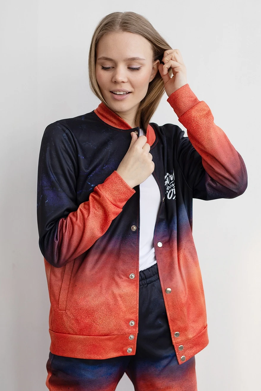 Сублимация. Полноцветная печать осуществляется на всей поверхности бомбера в процессе производства. Изображение располагается в соответствии с лекалом. Нанесение входит в стоимость бомбера.