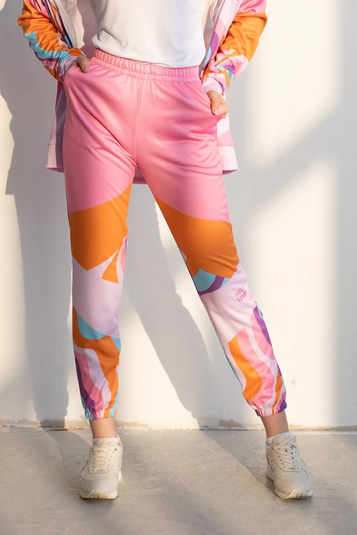 Женские брюки Экшен великолепно подойдут для фитнеса и физических занятий в тренажерном зале. Эта модель спортивных штанов может быть выполнена в любом цветовом оформлении. Более того, на всей поверхности брюк допускается нанесение изображений с помощью сублимационной технологии печати на тканях.