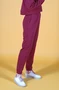 Модель: Прилегающие брюки с резинкой по низу изделия. Пояс цельнокроеный на резинке, дополнительно регулируется белым или черным полиэфирным шнуром с внутренней стороны изделия. Ширина пояса 4 см. Брюки с карманами. За дополнительную плату изделия могут быть пошиты с двумя прорезными карманами в листочку на молнии. По желанию клиента листочки карманов могут быть изготовлены из материала другого цвета (входит в стоимость наценки за карманы).