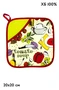 Обработка: Косая бейка по периметру. Для удобства эксплуатации прихватка имеет петлю из обтачки.