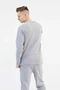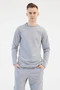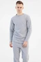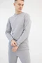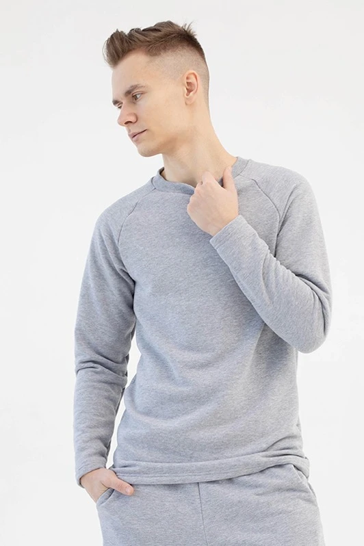 Модель. Лонгслив прямого силуэта, без молнии, рукав реглан длинный. Горловина обработана тканью кашкорсе (специальная тканная резинка) в цвет толстовки. Толстовка без капюшона и карманов.