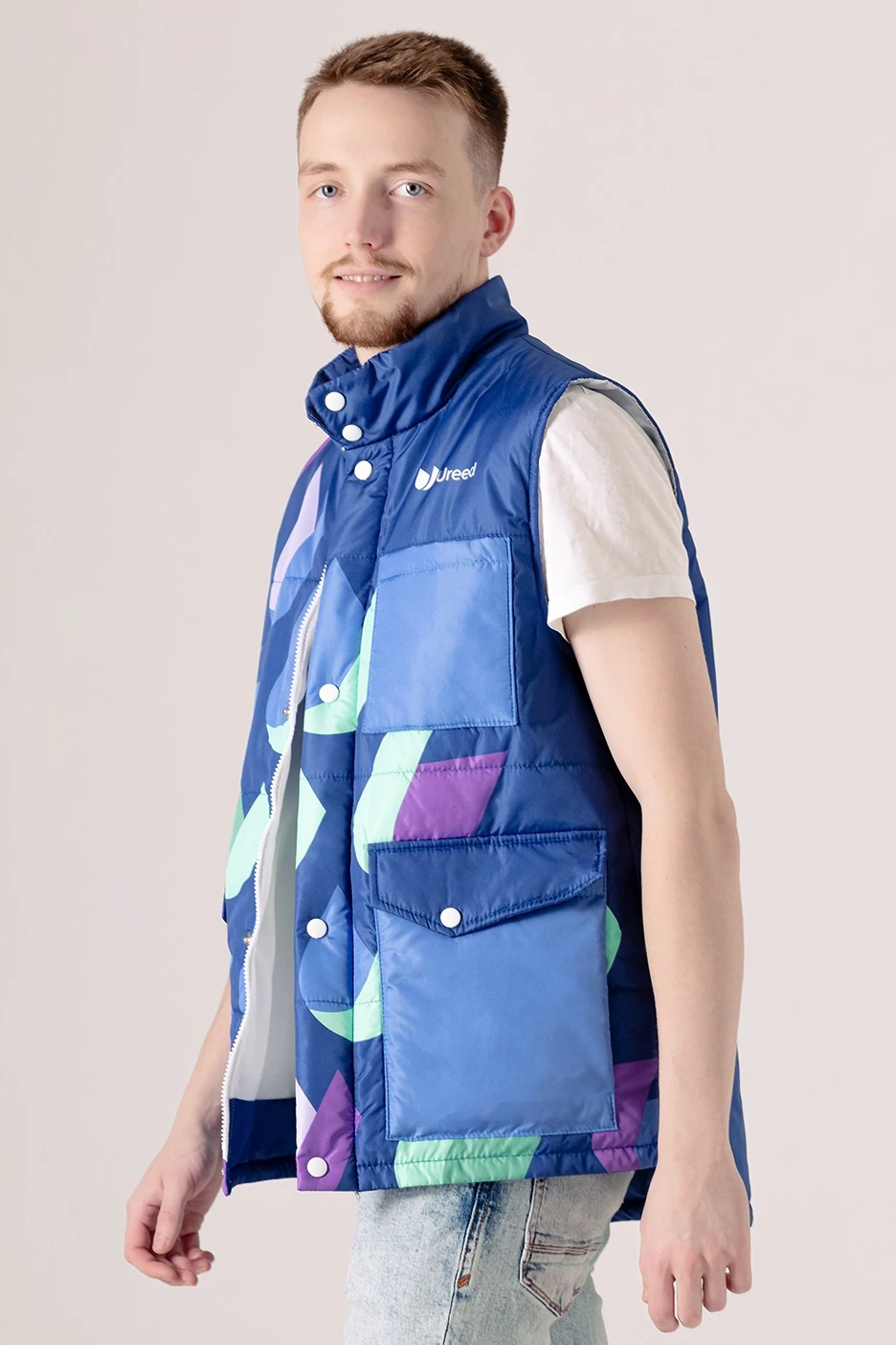 Жилет Хайк красив и практичен, выполнен из люксового материала. Он застёгивается на молнию с планкой на кнопах, а подклад на синтепоне отлично удерживает тепло в холодную погоду. На внешнюю поверхность жилета может быть нанесен нужный вам рисунок или логотип.