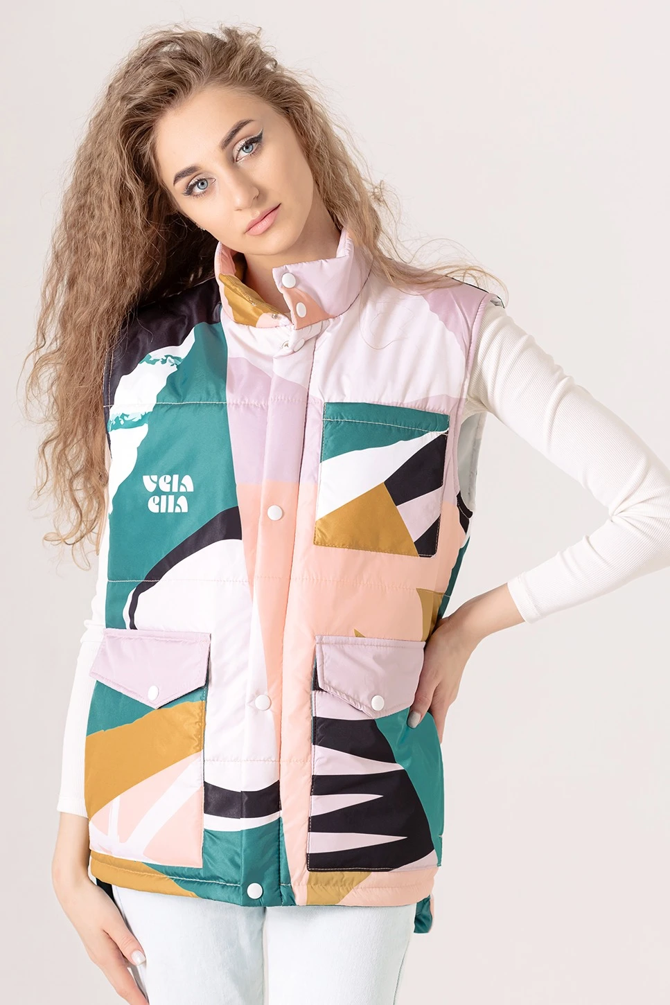 Жилет Хайк на синтепоне унисекс, с полной запечаткой "Vela ella"