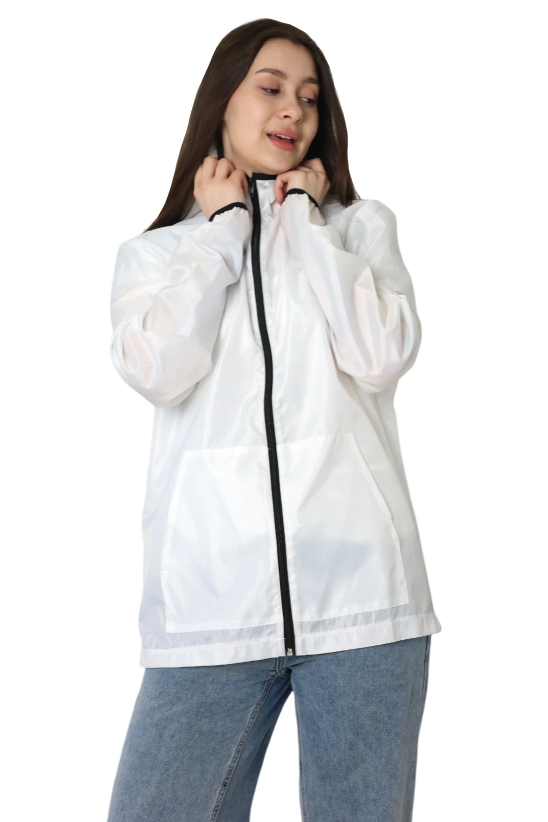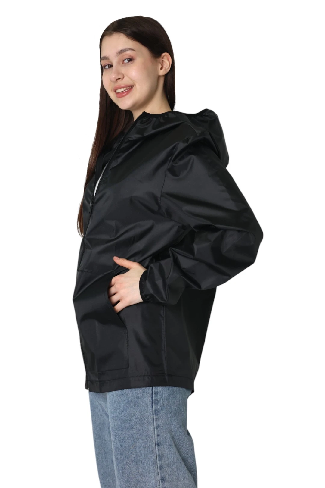 Модель. Ветровка Арчи прямого силуэта с притачным капюшоном. Застегивается спереди на молнию спираль чёрного цвета. Карманы накладные по типу кенгуру. Рукава втачные. Низ рукава и край капюшона обработан черной окантовочной резинкой.