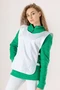 Модель: Накидка двусторонняя фигурной формы без карманов. Края и горловина накидки обрабатываются косой бейкой, передняя и задняя части накидки соединены парой резинок по бокам.