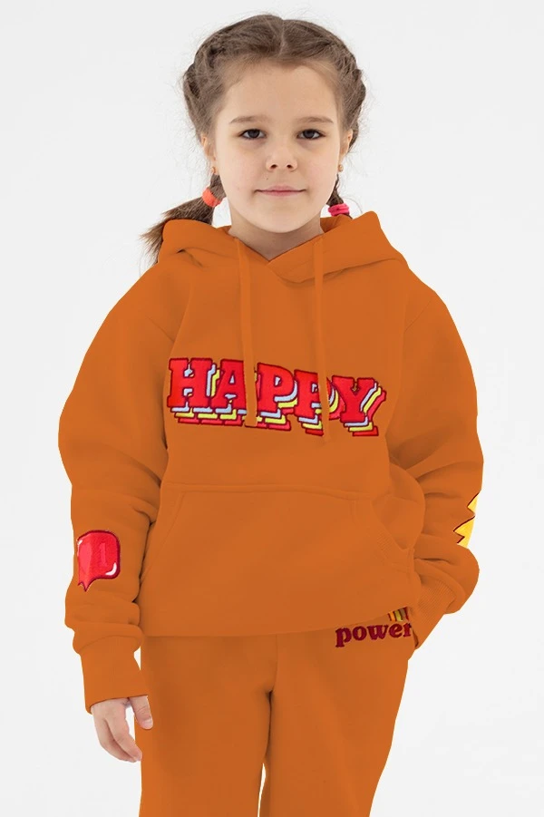 Модель. Толстовка прямого силуэта без молнии. Длинные рукава. Низ толстовки и рукавов обработаны тканью кашкорсе (специальная тканая резинка) в цвет толстовки. Один общий карман по типу кенгуру. Капюшон пришивной двухслойный, внутренний слой из однотонной кулирной глади с лайкрой стандартных цветов на выбор. У края капюшона продет плоский шнур стандартных цветов.